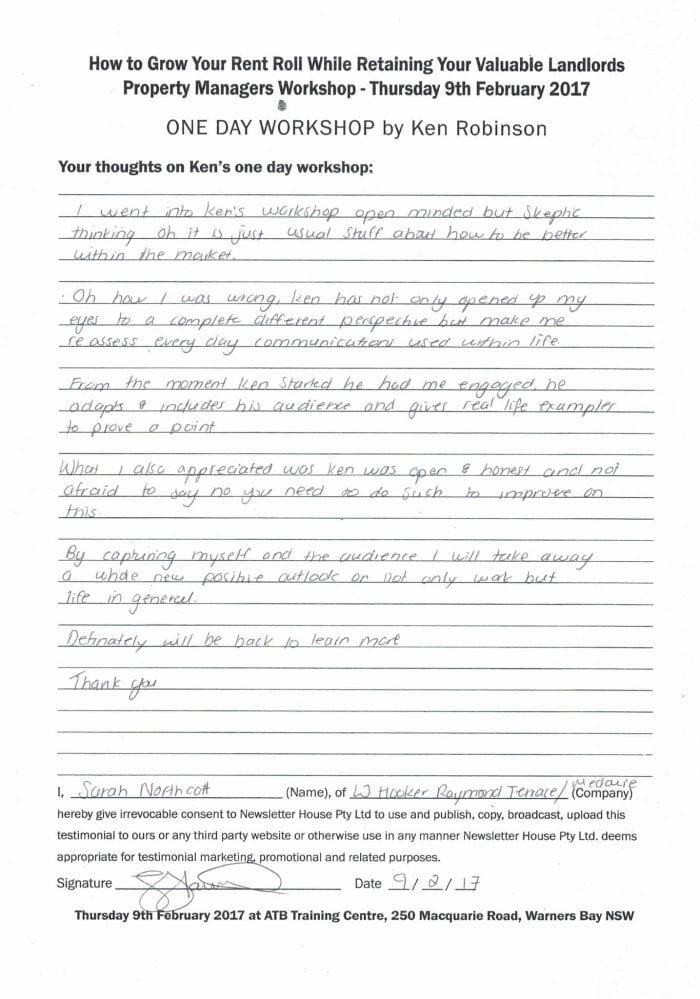 Twenty-four years ago Ken established a marketing program for real estate agents. Using the cold calling approach he will teach you in this workshop, he has sold his program to over 400+ real estate offices across Australia and New Zealand.